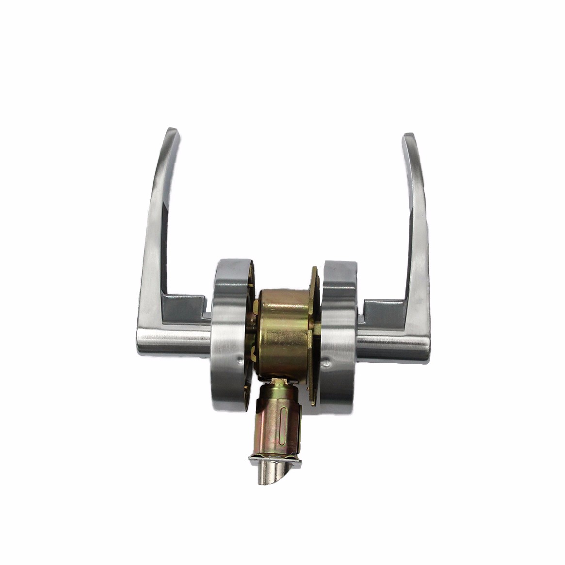 門的任何一側按下球柄,可使斜舌縮回,無鎖芯,無鑰匙。